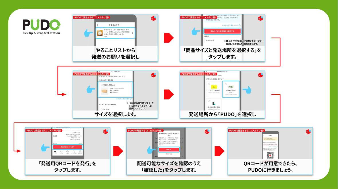 オープン型宅配便ロッカー「PUDO(プドー)ステーション(以下PUDO)」を展開するPackcity Japan株式会社(所在地:東京都千代田区、代表取締役社長 CEO:柳田 晃嗣、以下「PCJ」)は、株式会社メルカリ(本社:東京都港区、取締役 兼 代表執行役 CEO:山田 進太郎、以下メルカリ)が展開する「エコメルカリ便」の発送サービスを、PUDOにて開始したことをお知らせいたします。配送はSBS即配サポート株式会社(本社:東京都江東区、代表取締役社長:鎌田 正彦、以下SBS即配)が担います。これにより、駅やスーパーマーケット等、生活動線上に設置されたPUDOから、非対面での発送が可能となります。