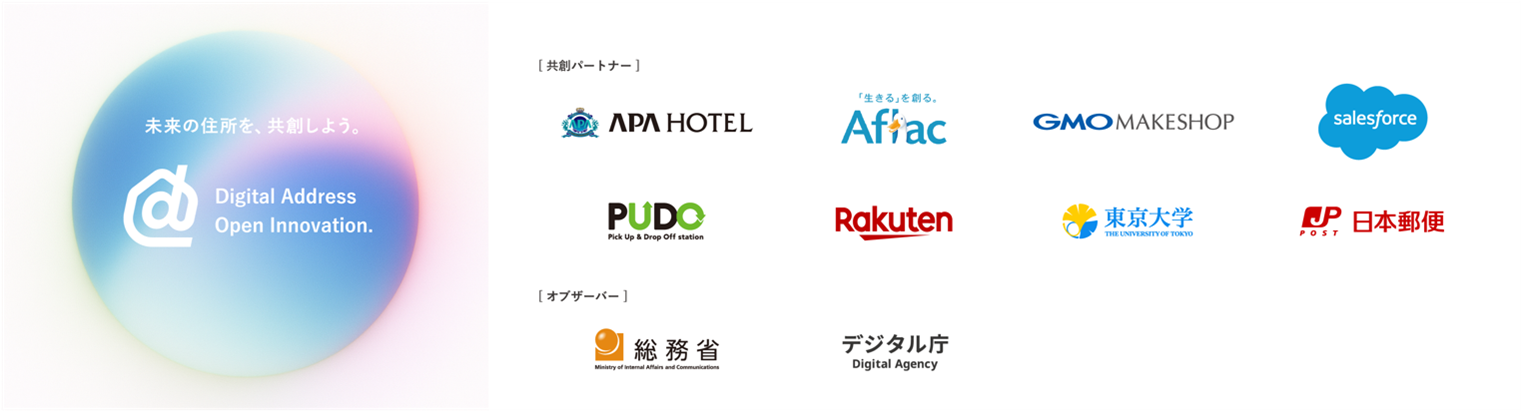 アパグループ(東京都港区、社長兼最高経営責任者(CEO) 元谷 一志)、アフラック生命保険株式会社(東京都新宿区、代表取締役社長 古出 眞敏)、GMOメイクショップ株式会社(東京都渋谷区、代表取締役社長CEO 向畑 憲良)、株式会社セールスフォース・ジャパン(東京都千代田区、代表取締役会長兼社長 小出 伸一)、楽天グループ株式会社(東京都世田谷区、代表取締役会長兼社長 三木谷 浩史)、国立大学法人東京大学(東京都文京区、総長 藤井 輝夫)、日本郵便株式会社(東京都千代田区、代表取締役社長 小池 信也、以下「日本郵便」)およびPackcity Japan株式会社(東京都千代田区、代表取締役社長 CEO 柳田 晃嗣)の共創パートナーは、業界の枠を越えて 住所の課題を解決することを目的とした、共創型コンソーシアム「デジタルアドレス・オープンイノ ベーション」を2026年1月23日(金)に発足いたします。