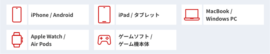 対象商材: スマホ、タブレット、Apple Watch、スマートウォッチ、AirPods